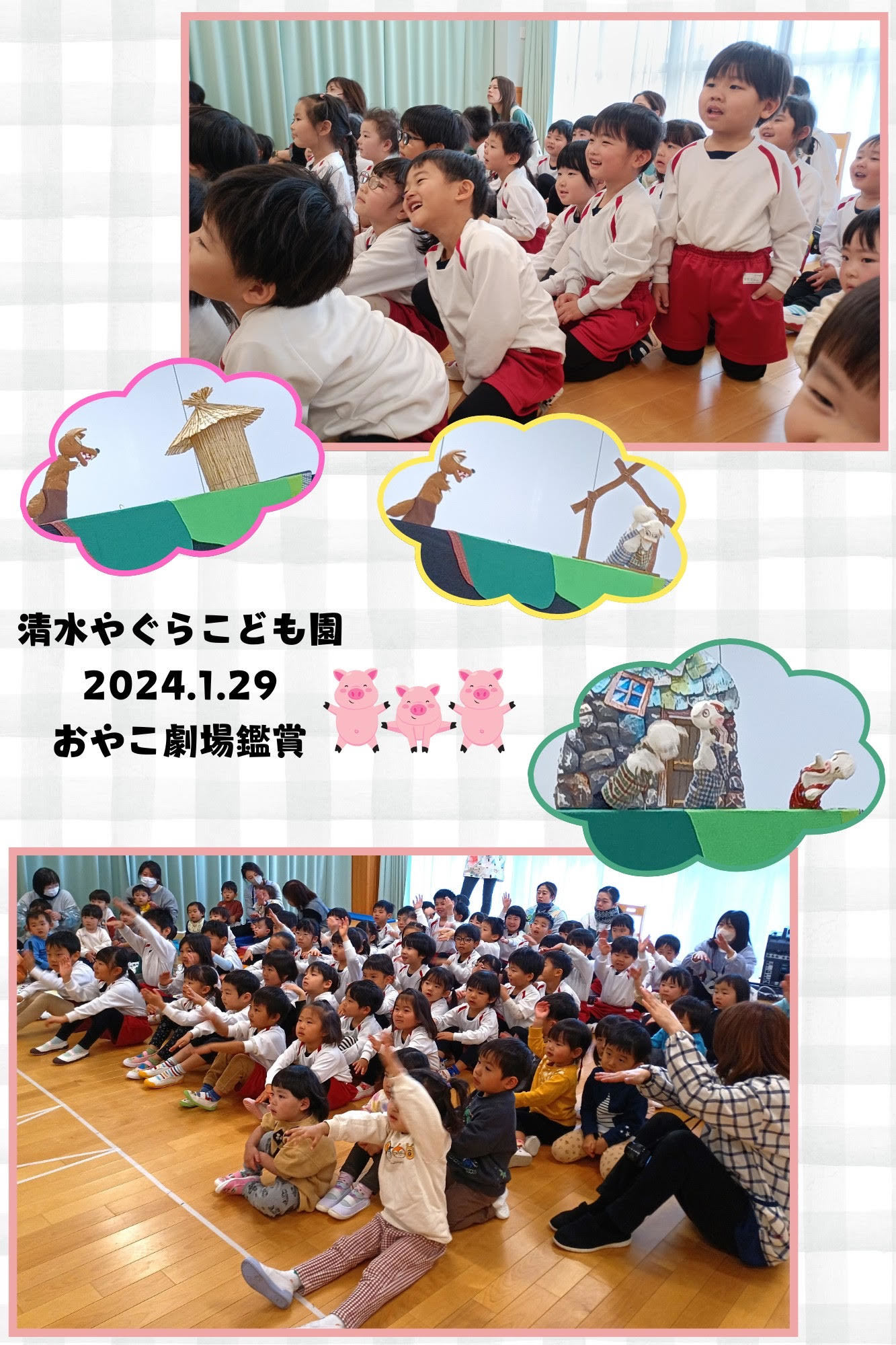 楽しい手遊びや、3匹の子ぶたの人形劇を鑑賞しました。