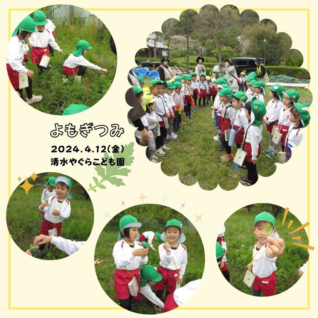 姉妹園の蒲原学園幼稚園の年長さんと一緒によもぎ摘みをしました。