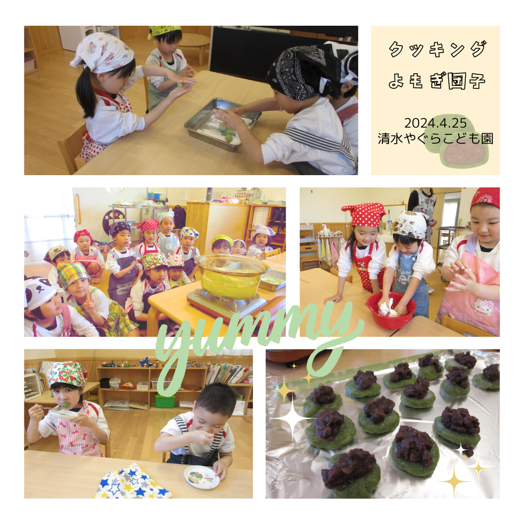 年長組さんが、先日摘んできたよもぎを使ってお団子を作りました!