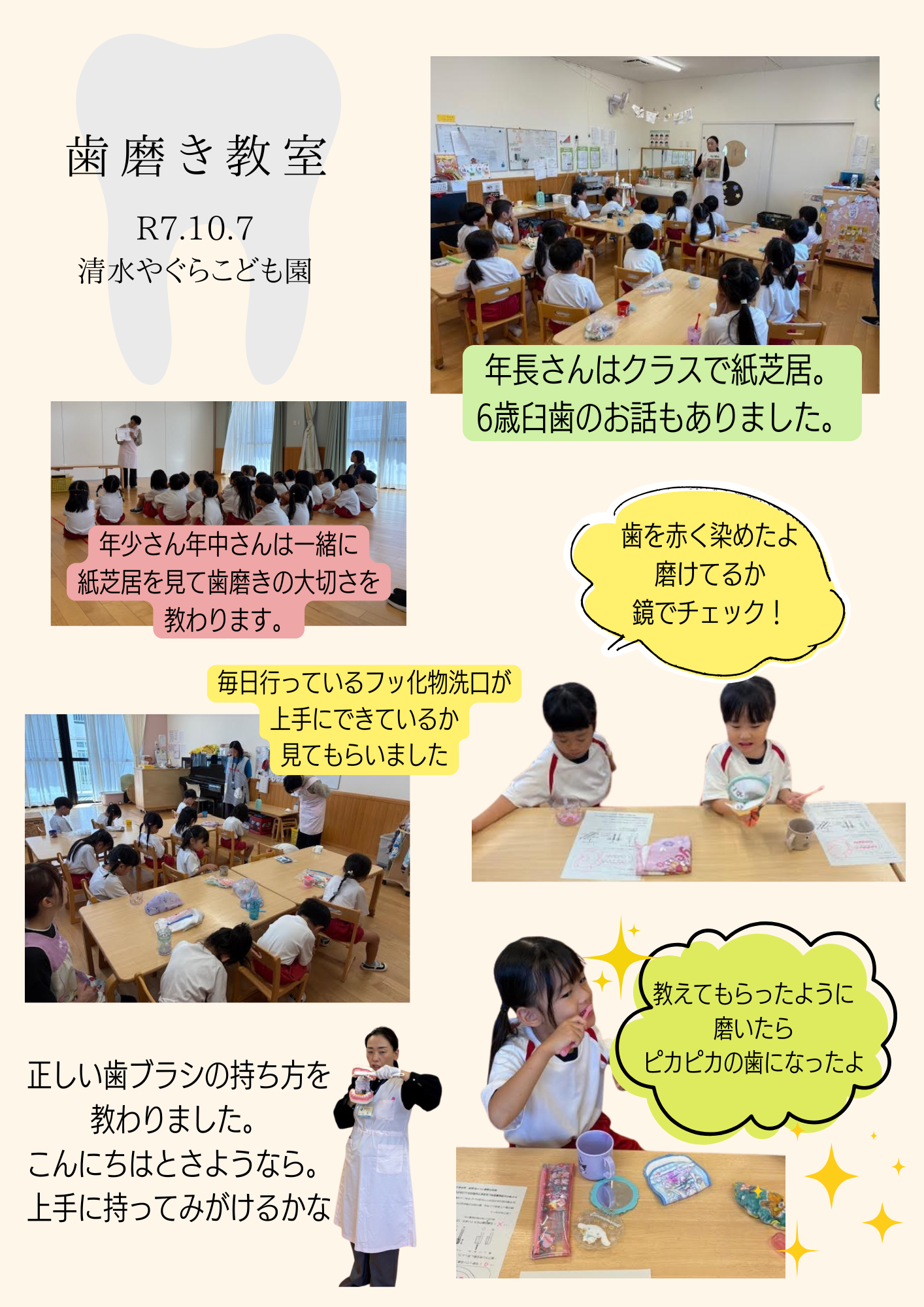 歯科衛生士さんが来園し、年長・年中さんに歯磨き指導をしてくれました。