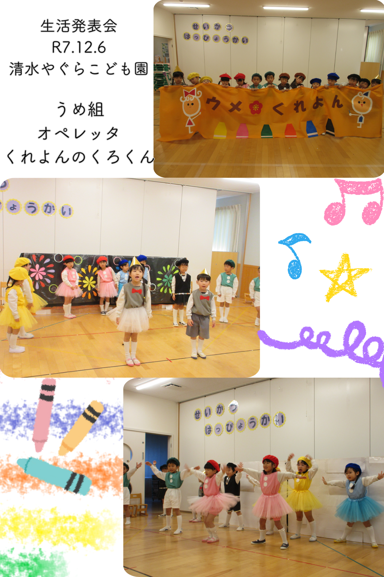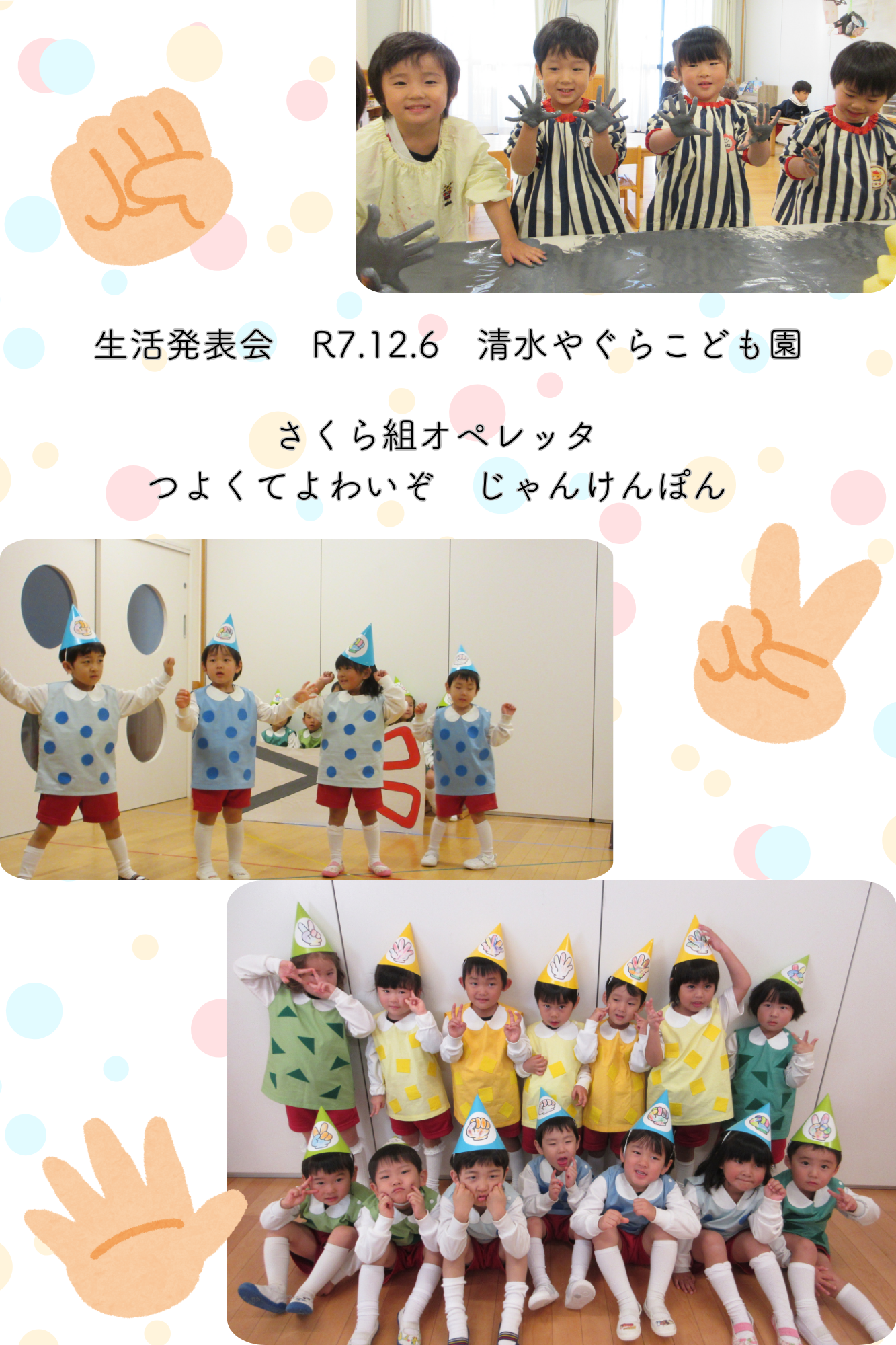 12月6日土曜日 清水やぐらこども園で幼児組さんの生活発表会を行いました。